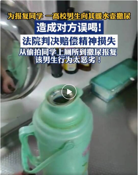 近日,中国裁判文书网公布了一起人格权纠纷民事判决书。判决结果显示,涉案两人属于同一阶级。 2023年10月,被告在原告如厕时偷拍其私处。被发现后,他道歉并删除了照片,但不满足并进行报复。今年3月,被告潜入原告宿舍,在她的水壶里撒尿,导致她无法喝水。法院认为被告的行为侵犯了原告人格尊严,判令其支付医疗费815元、交通费391.64元、精神损害抚慰费3000元。来源 |红星新闻、海报新闻 编辑:舒梦清